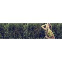 Robe mousseline longueur genou. Encolure en V avec élastique sous la poitrine.